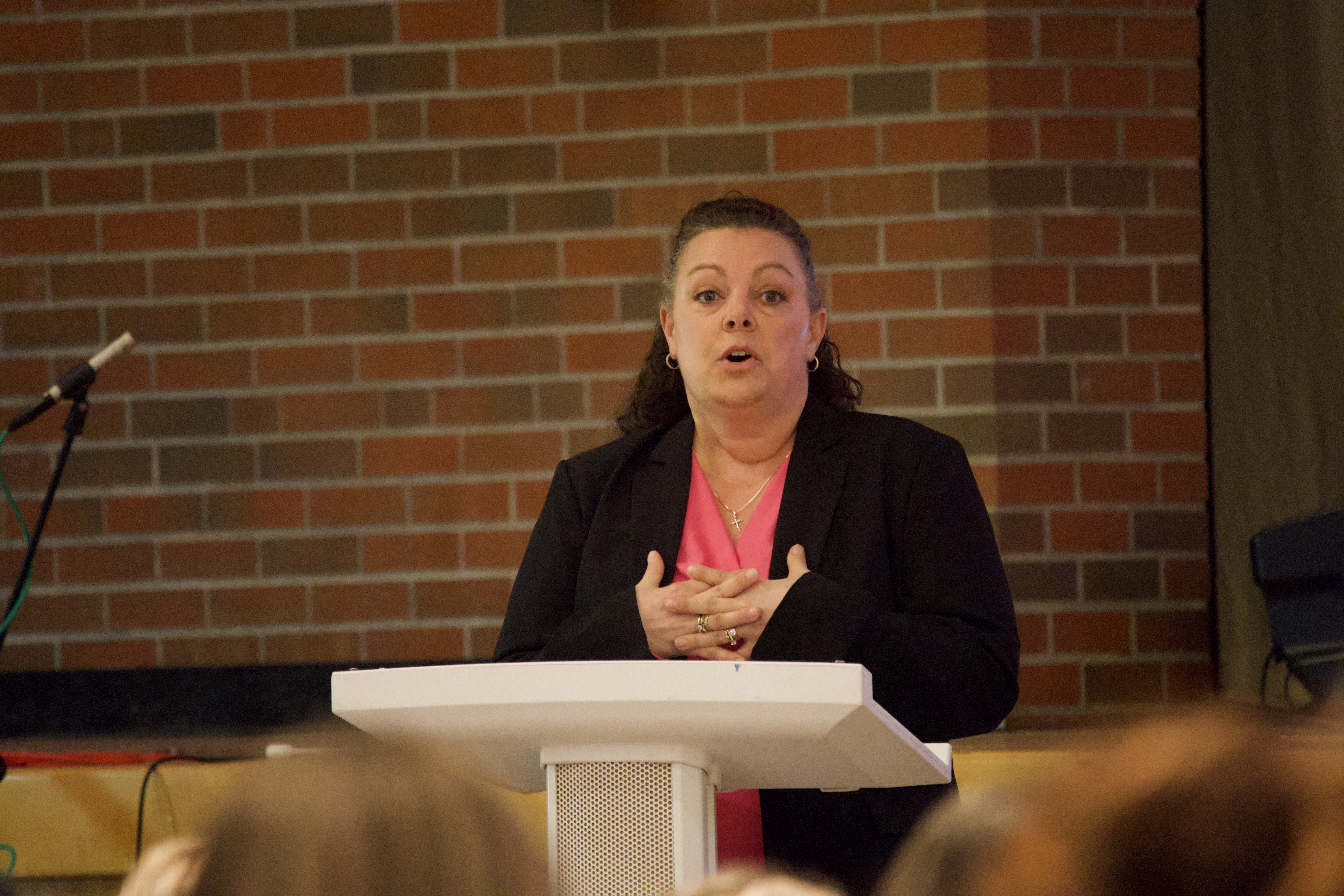 Students also heard a powerful personal story from breast cancer survivor Carla Leto, Angela’s mother, who shared her journey, resilience, and message of hope with those in attendance.