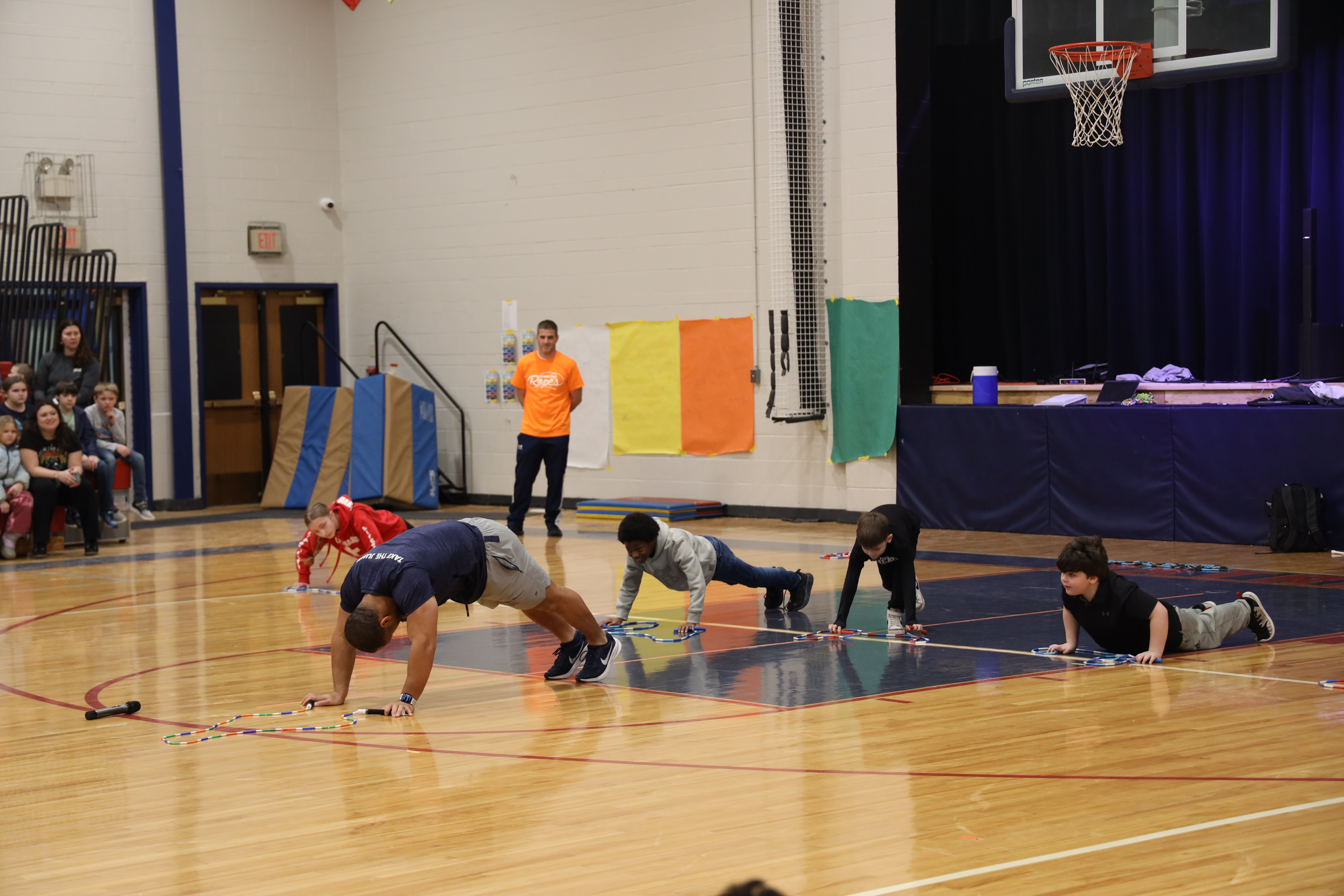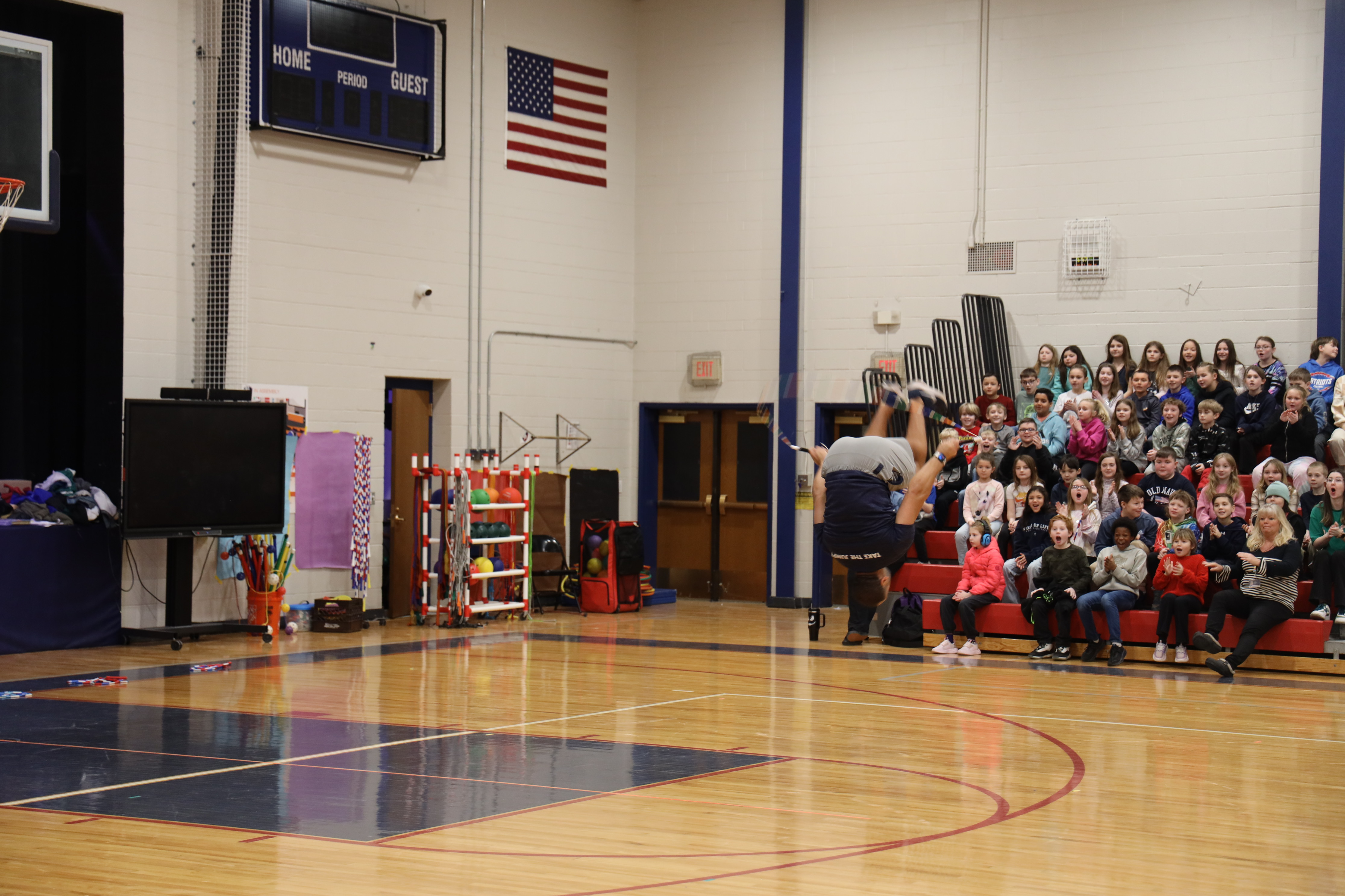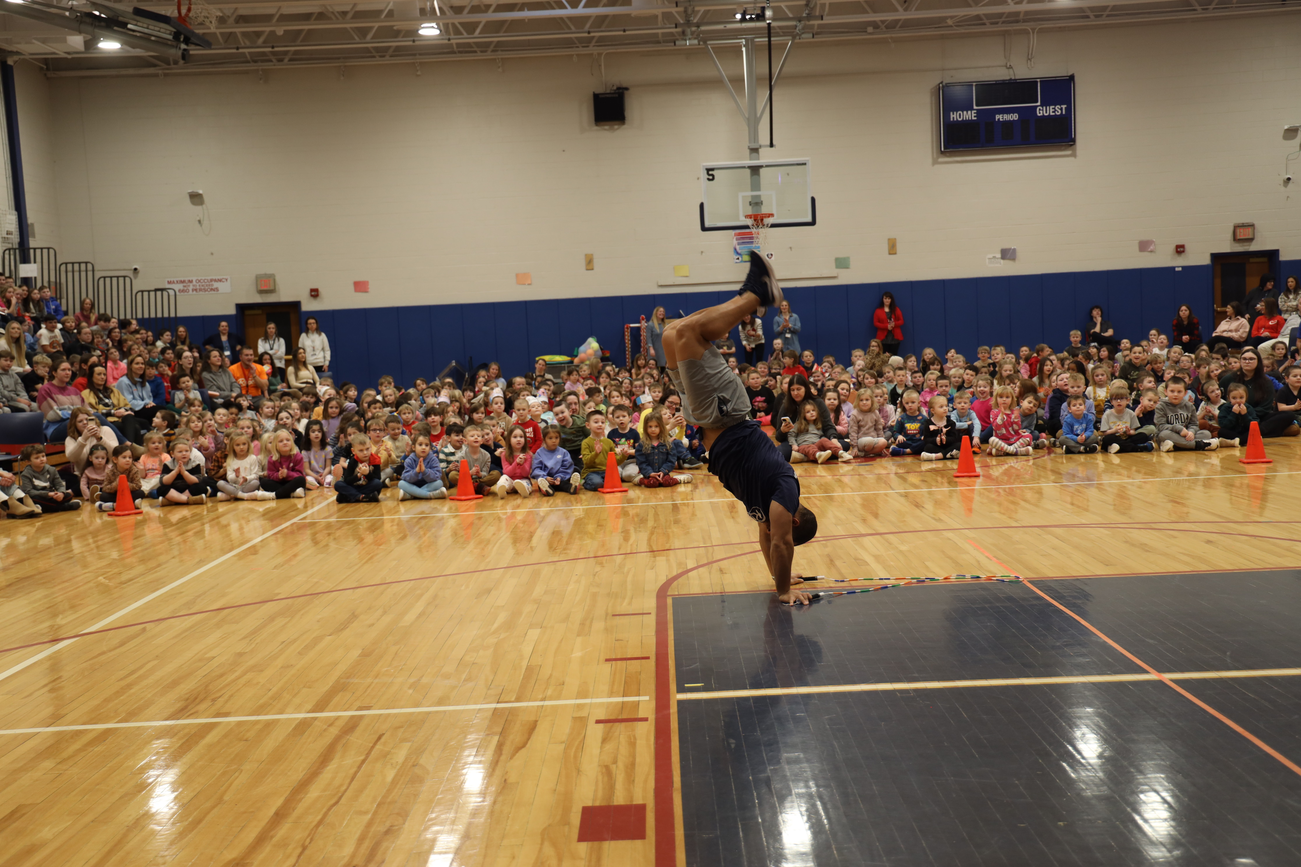 The assembly generated excitement around the Kids Heart Challenge, as Woodard showcased his jump rope talents. Woodard and his wife Kaylee have performed across the globe at a variety of venues and events, including NBA games, Cirque Du Soleil, schools, and summer camps. On Monday at BPES, Woodard started his presentation with a variety of jump rope stunts while also offering messages of encouragement and support to students at BPES.